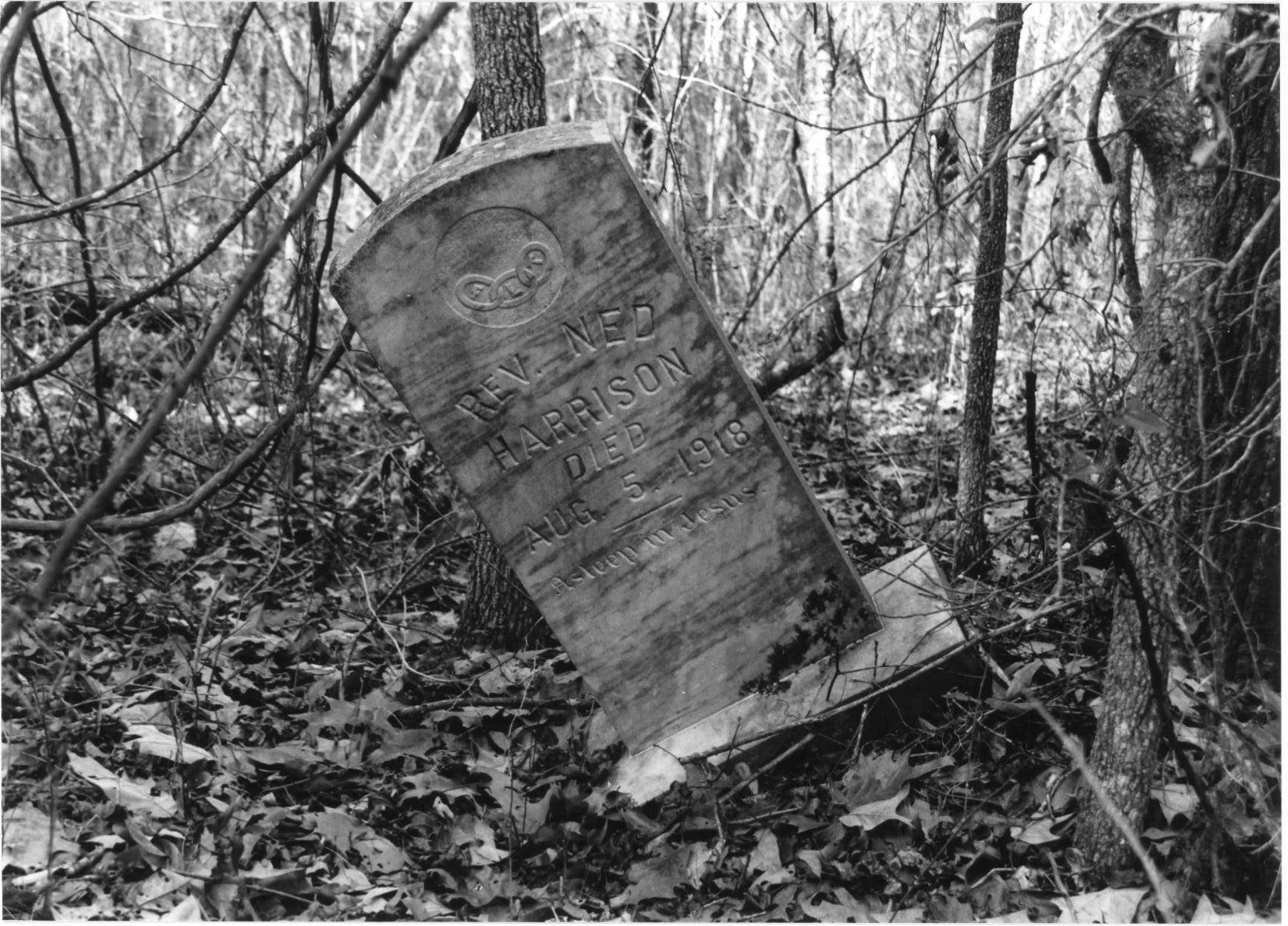 I searched the world wide web for Ned Harrison, a freed man but likely once a slave, but found no record of his birth. The only unique feature of the headstone—aside from it looking like it will fall over any minute—is the FLT symbol etched in chain links at the top: “Friendship, Love, and Truth,” the motto of the Grand United Order of Odd Fellows.